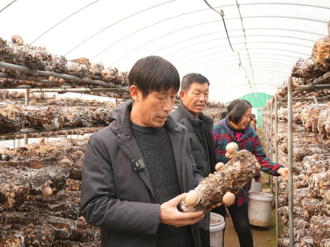 桐柏县程湾镇种植户忙着采收香菇。杜红然摄