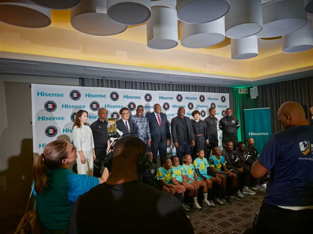 当地时间12月5日,海信南非公司向南非皮托·莫西马尼青少年足球项目(Pitso Mosimane Youth Football,简称 PMYF)捐赠100部海信移动设备仪式在南非行政首都比勒陀利亚举行。