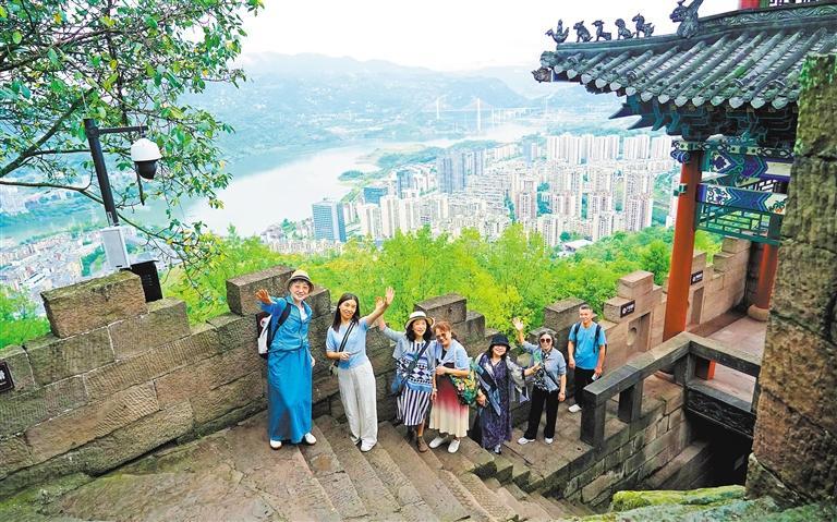 10月13日,游客在云阳县磐石城遗址公园游览。云阳县正积极建设“自然奇观+历史文化+城市休闲”的完整旅游体系,从季节性旅游向全域全时旅游升级。