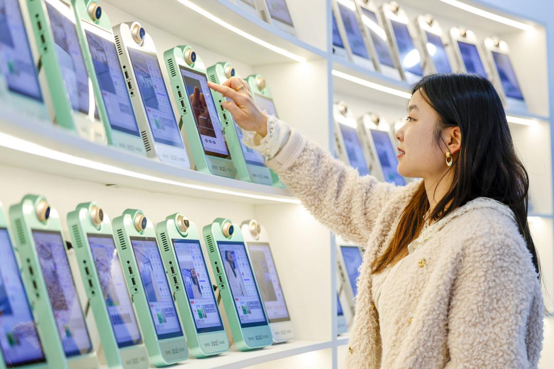 12月8日,安徽省黄山市黟县经济开发区安徽灵境互动科技有限公司,工作人员在展示AI智能直播机。近年来,黟县积极推动传统制造与数字经济深度融合,加速构建从硬件研发到场景应用的完整产业生态,为区域经济高质量发展注入“数字动能”。