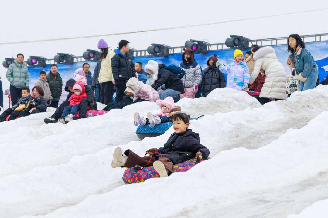 12月7日,小朋友在新疆乌鲁木齐市植物园冰雪大世界滑雪圈,尽享冰雪运动乐趣。进入冬季,新疆多地迎来中小学生首个“雪假”。“雪假”不仅满足学生冰雪活动需求,更有效点燃当地冬季旅游热度,带动冰雪相关场所客流持续攀升。