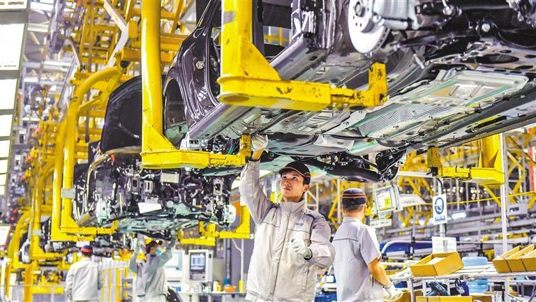 12月9日,位于四川省成都经济技术开发区的一汽—大众成都分公司,员工在组装车辆。该公司最快54秒即可产出下线一辆新车,最高日产量2000台。李向雨摄(中经视觉)