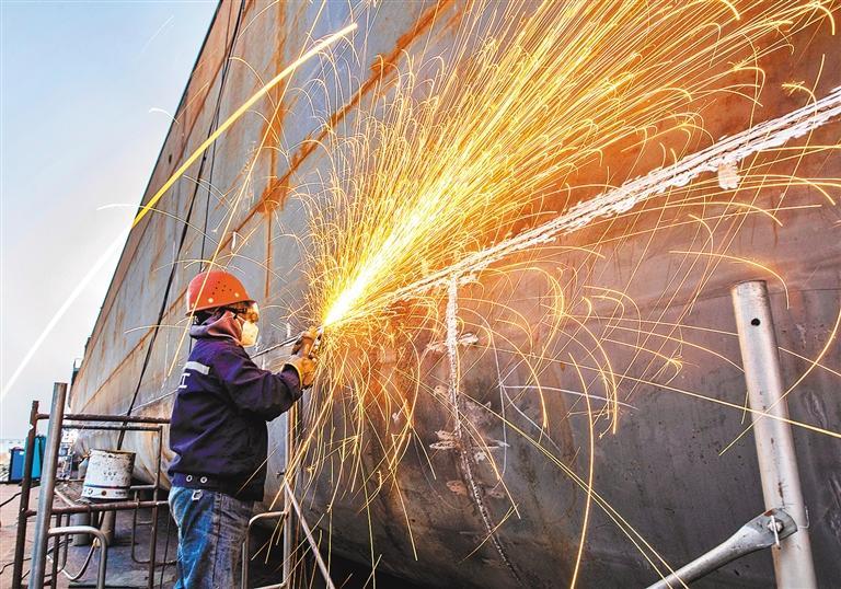 12月1日,江西省九江市都昌造船总厂,工人在赶制船舶订单。尹 志摄(中经视觉)