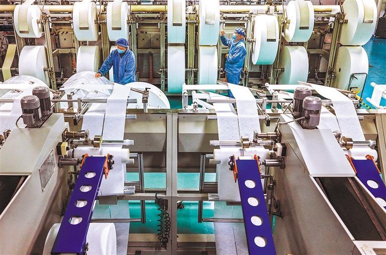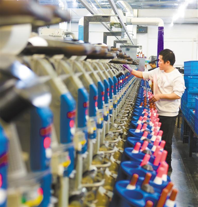11月10日,安徽省马鞍山市当涂经济开发区植护家化有限公司,自动化生产线快速打包下线产品,准备发往全国各地。王文生摄(中经视觉)