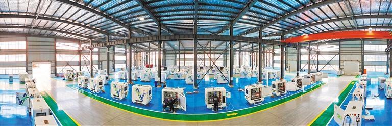 12月10日,江苏海宏智能科技有限公司生产车间,工人在组装移动储能智能充电机器人。耿玉和摄(中经视觉)