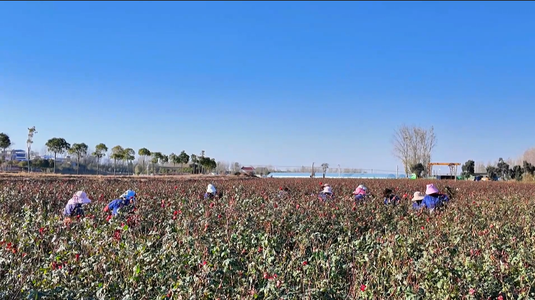 南阳月季基地3000亩月季培育区,员工们繁忙景象。钱鑫 梁颖 摄