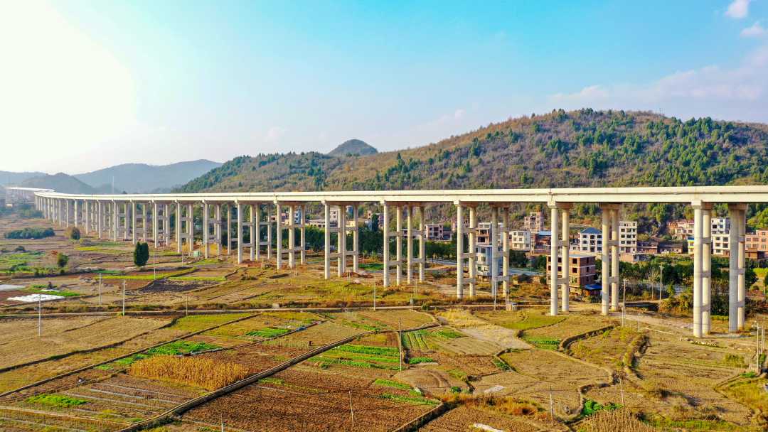 12月11日,湖南省永州市新田县龙泉街道,建设中的桂(东)新(田)高速梅湾村大桥。日前,桂新高速主线全幅贯通,项目转入路基交验及附属工程施工阶段。