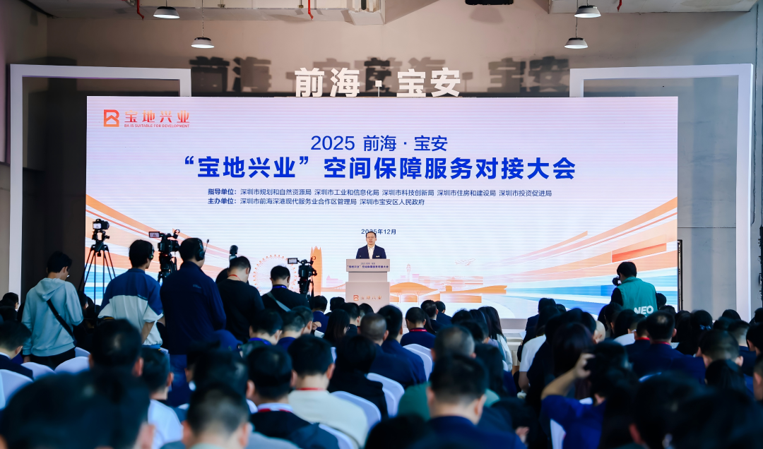 12月11日,2025前海•宝安“宝地兴业”空间保障服务对接大会在深圳宝安区举办。大会以“定制化”空间解决方案为导向,集中展示宝安区超300公顷产业用地、超2000万平方米产业用房,正式上线宝安AI智选空间平台,并就宝安区重点片区规划、产业空间配套等相关政策进行解读,旨在以空间对接为核心破解产业升级与空间提质难题,打造永不落幕的产业空间对接平台,向全社会传递鲜明信号。