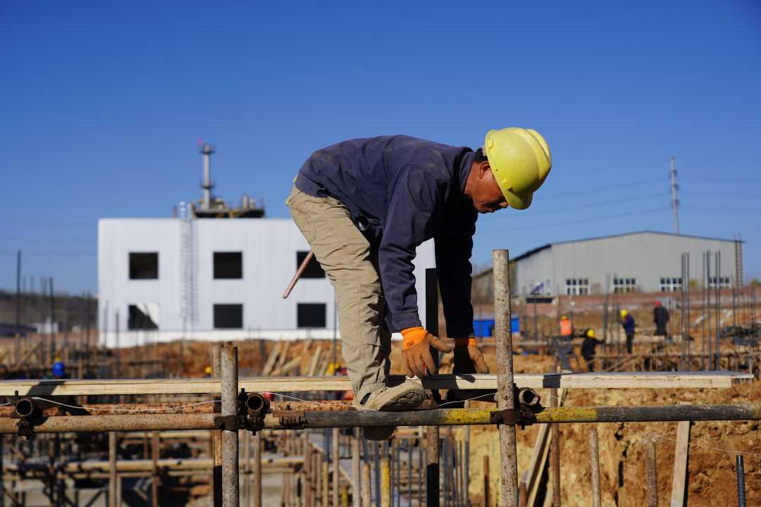 工人正在项目现场进行钢筋安装绑扎作业。占甜甜摄
