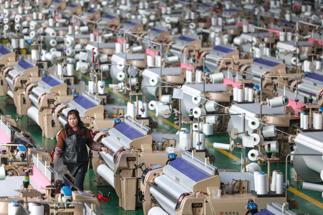 12月17日,位于贵州省毕节市一纺织企业生产车间内,工人在巡检设备。