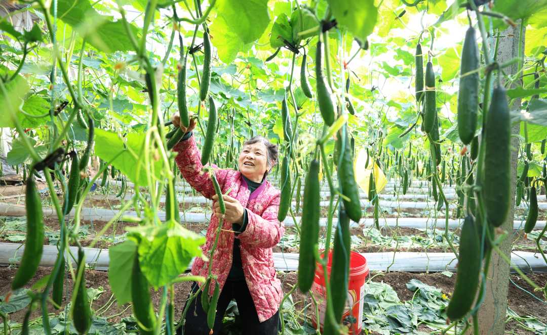 山东郯城:黄瓜采摘