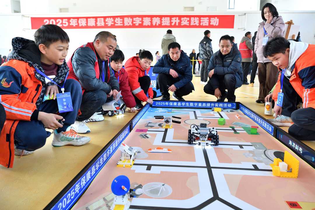 12月18日,湖北省襄阳市保康县后坪镇中心学校,学生在参加GAR未来工程师比赛。