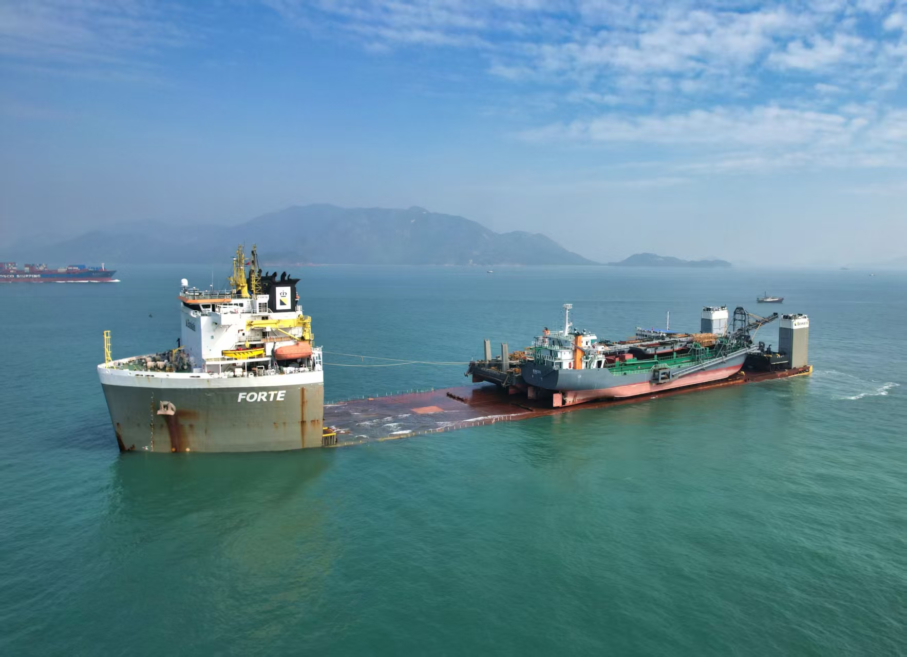 据悉,本次启航的半潜船,承运的是西非科纳克里等港口扩建项目所需的关键基建设备与码头设施部件,设备总重超5700吨、价值超7000万元。大屿山锚地正式开放后,企业可直接在锚地完成装船作业,为大型海工设备出口提供了更加稳定、快捷的“出海”通道。