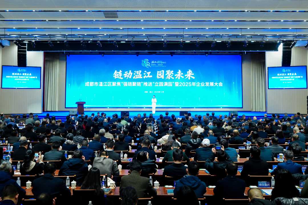 12月26日,成都市温江区召开聚焦“强链聚链”推进“立园满园”暨2025年企业发展大会,来自企业、金融机构、高校院所、产业商协会(联盟)等机构的代表参会。
