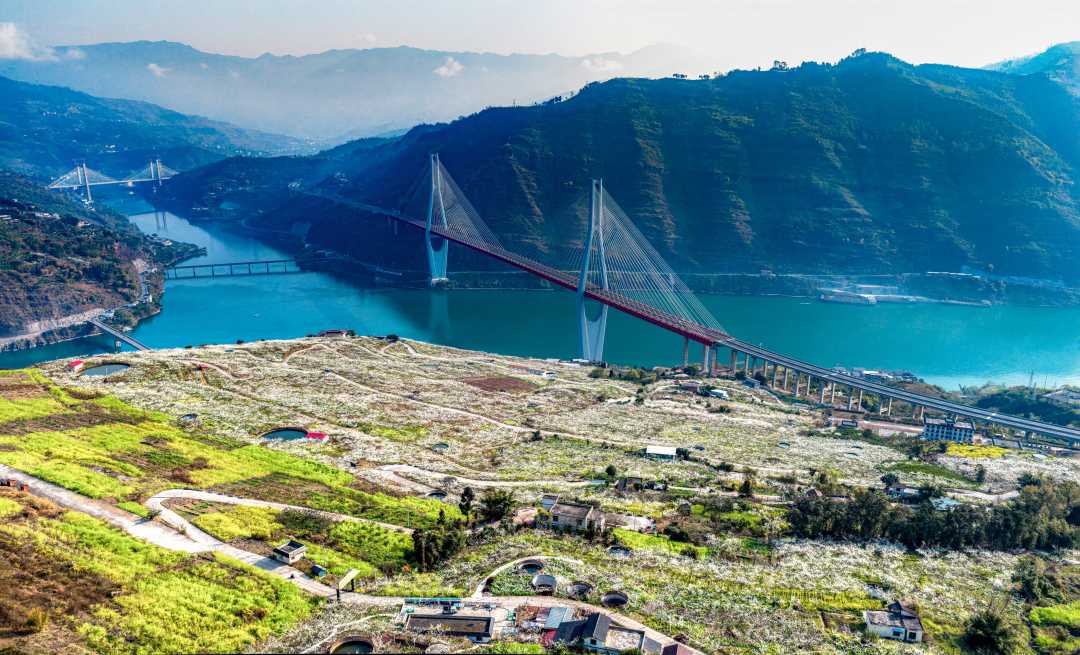 3月1日,云南省昭通市绥江县,金沙江畔漫山遍野的李子花迎春绽放,景美如画。