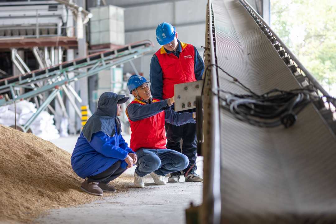 3月2日,安徽省铜陵市郊区永兴米业生产车间,供电公司服务队对企业用电设备开展隐患排查。