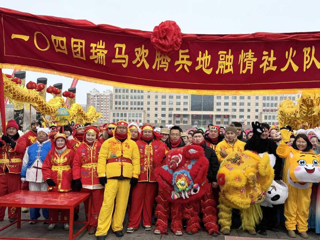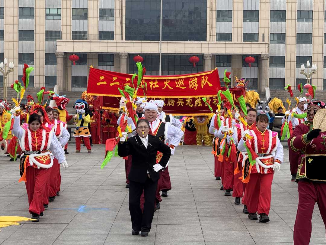 活动在欢腾的锣鼓声中拉开帷幕,各团场社火队、主题花车组成的巡游队伍蜿蜒前行,成为广场上一道流动的文化风景线。舞龙舞狮、秧歌旱船等传统社火轮番登场,戏曲人物、武术表演等非遗元素穿插其中,吉祥祝福此起彼伏,浓浓年味扑面而来。
