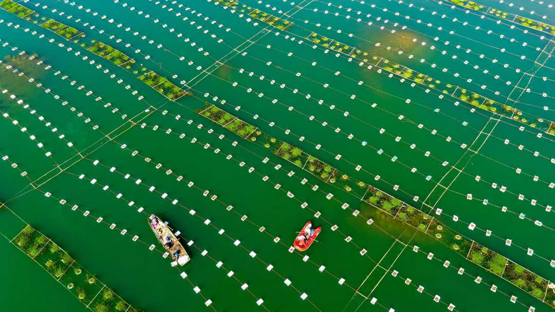 3月14日,珠江干流西江广西梧州市区段,工作人员驾驶小艇管护人工鱼巢。近年来,梧州市通过布设人工鱼巢促进鱼类繁育,保护珠江流域渔业资源,持续改善水生态环境。