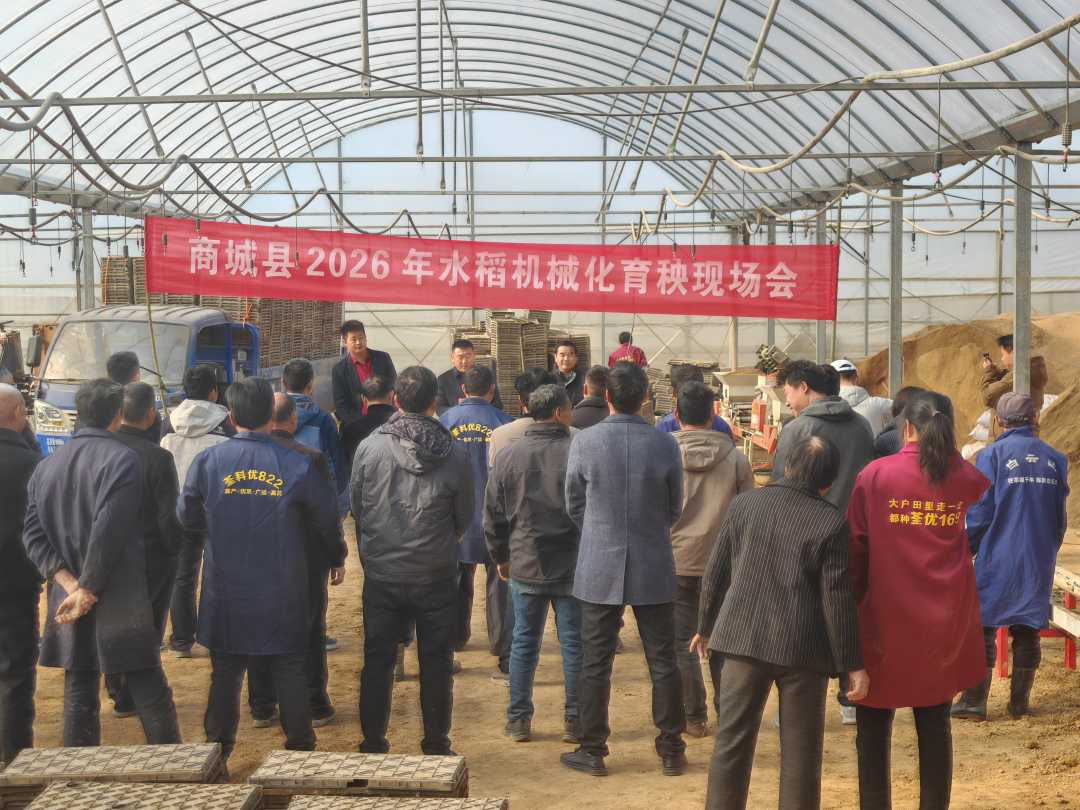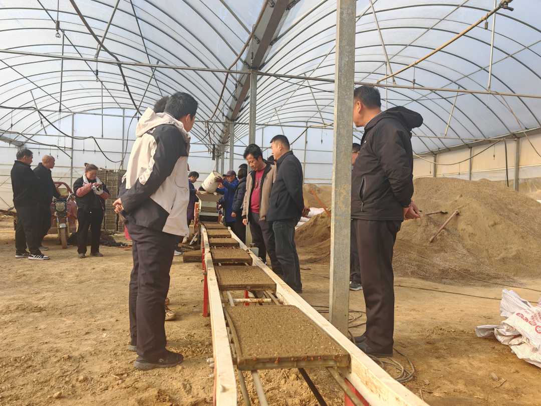 提升农业机械化水平是保障春耕生产质效的关键。3月10日,在李集乡峡口村斗岭农机专业合作社内,一场水稻机械化育秧现场会正在举行,来自周边乡镇的近30名种粮大户现场观摩学习。“传统人工育秧效率低、秧苗素质不匀,工厂化育秧能实现精准播种、出苗整齐,是机插秧的基础保障,可谓‘苗好一半谷’。”该县农机技术中心工作人员张强现场讲解道。