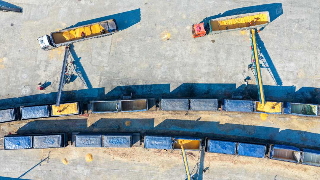 中国铁路哈尔滨局集团公司通过开行直达专列、优化多式联运,搭建高效物流网络,精准保障“北粮南运”。