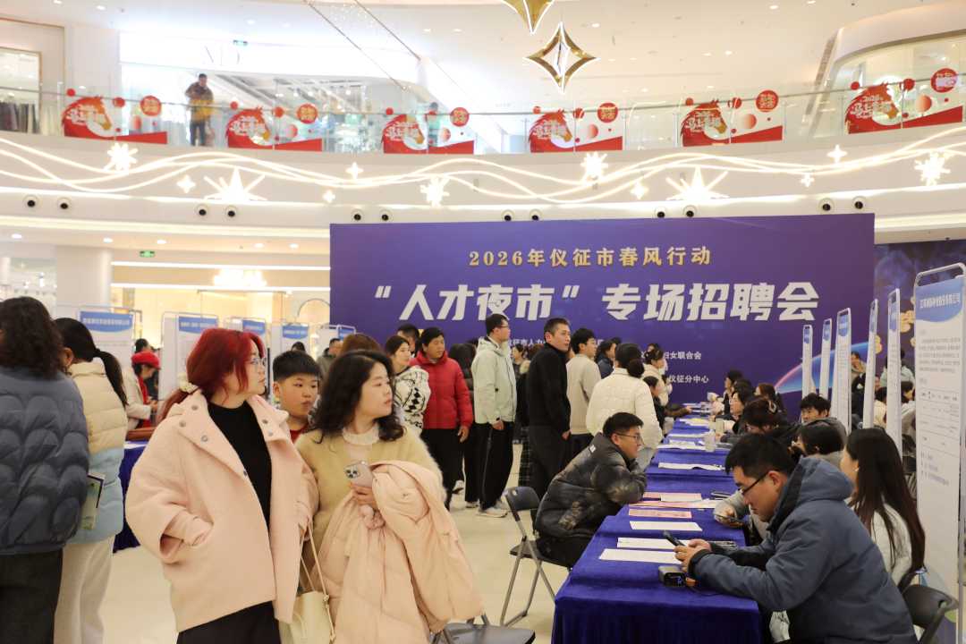 3月20日,江苏仪征市“人才夜市”招聘会在东区商场举办,助力企业引才、市民就业。