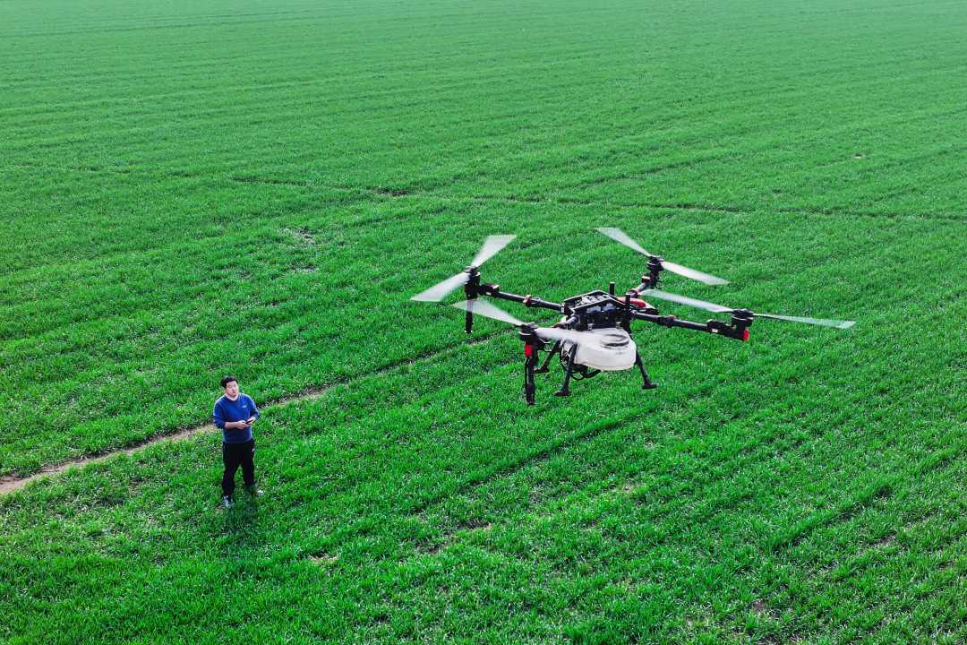 3月20日,山东邹平市高新街道周西村,农户操作无人机进行打药作业。