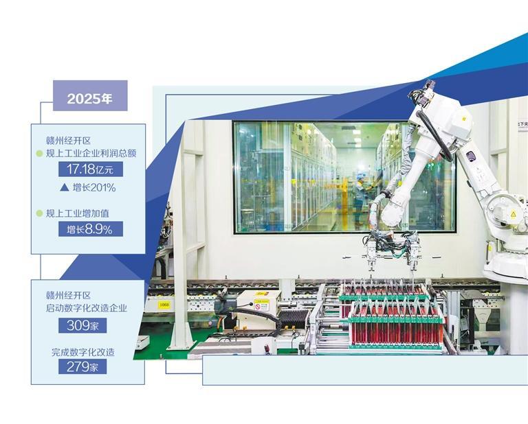 近年来,江西赣州经开区实施工业强区战略,深入推进产业集聚,加速数字化转型,深度融入粤港澳大湾区,经济发展呈现“位势向上、结构向优、产业向新”的发展态势。2025年,全区规上工业企业利润总额达17.18亿元,增长201%;规上工业增加值增长8.9%,产业能级在集群发展中实现新跨越,为“十五五”良好开局积蓄强劲动能。