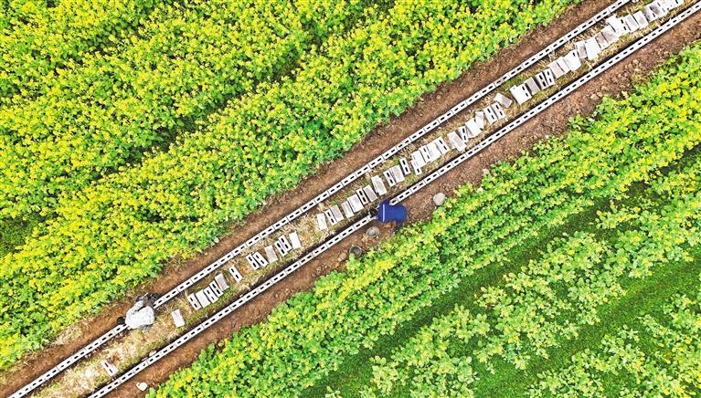 3月10日,湖南省永州市江永县潇浦镇接龙桥村,工人在砌田埂,以提高水资源利用率和农业防灾减灾抗灾能力。2025年,我国减淹耕地面积830万亩。田如瑞摄(中经视觉)