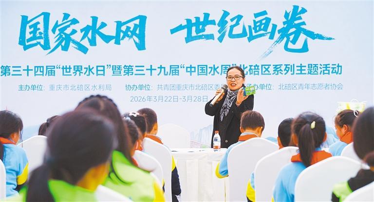 2026年3月22日是第34届“世界水日”,3月22日至28日是第39届“中国水周”,今年“中国水周”的主题为“国家水网 世纪画卷”。图为3月18日,专家在重庆市北碚区举办的“中国水周”活动中宣讲节水护水知识。秦廷富摄(中经视觉)