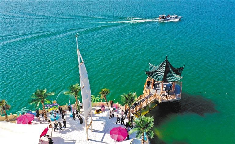 2月20日,南水北调中线工程渠首所在地河南省南阳市淅川县的丹江口库区丹江大观苑,天气晴好,碧波荡漾,吸引众多游客前来赏景游玩。段俊利摄(中经视觉)