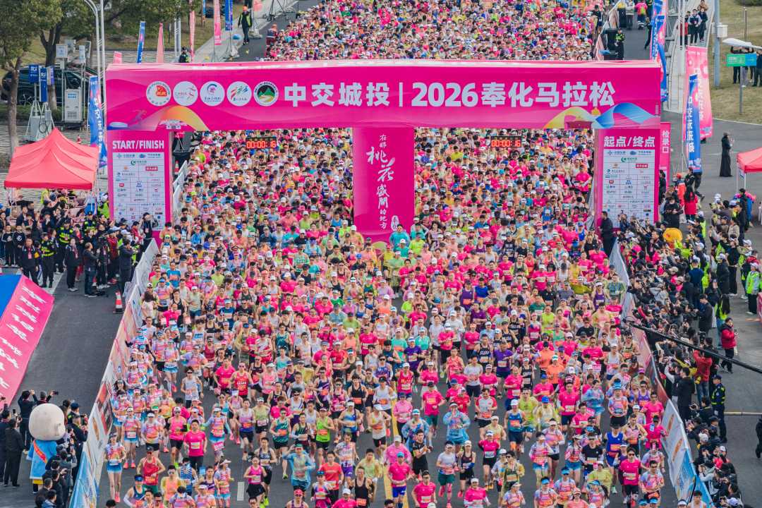桃花灼灼,春风拂面。3月22日上午7时,2026奉化马拉松在浙江省宁波市奉化区体育中心鸣枪开跑。来自全国各地的13000名跑者齐聚“在那桃花盛开的地方——奉化”,用奔跑的脚步丈量奉化设区十年的蝶变之路。