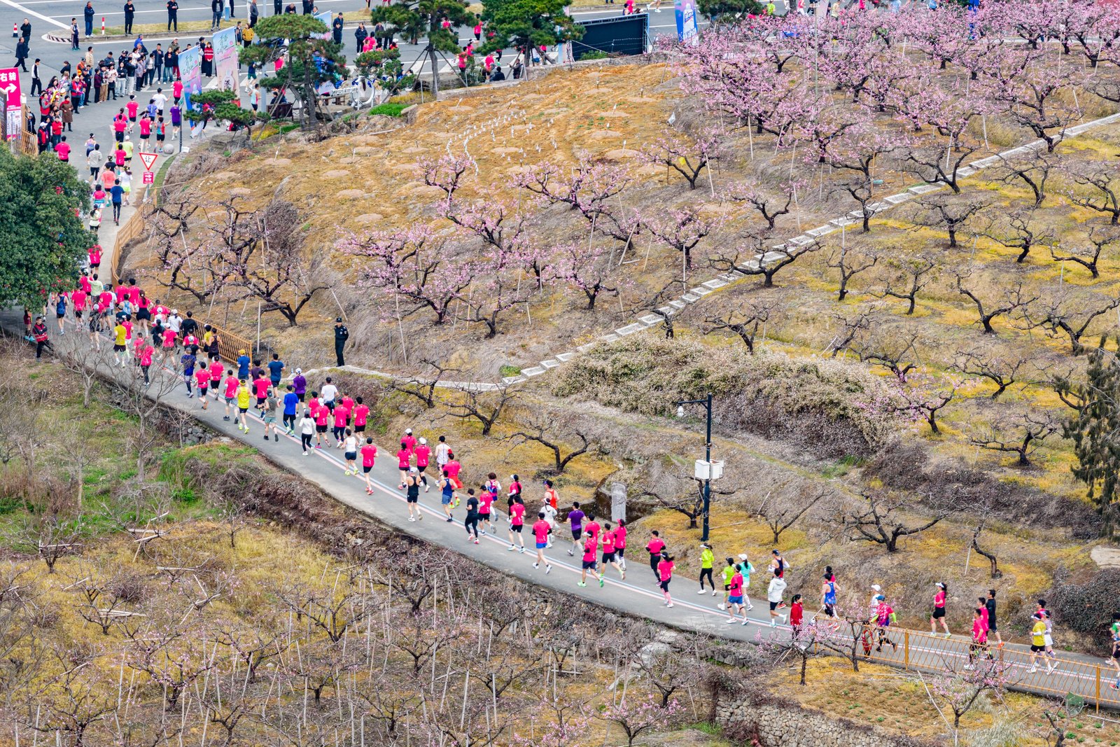 本届赛事以“桃马 越跑越欢喜”为主题,赛道线路经过精心优化,串联起奉化城市文化中心、“天下第一桃园”林家村、“全球生态500佳”滕头村、弥勒圣坛、溪口武岭门、剡溪沿江风光带等20余个核心文旅地标;沿途设置的87个氛围点,将奉化人文风情融入奔跑节奏,从国家级非遗“奉化布龙”的腾挪翻转,到现代街舞的动感节奏,让跑者在移步换景中,沉浸式体验“最美赛道”的独特魅力。