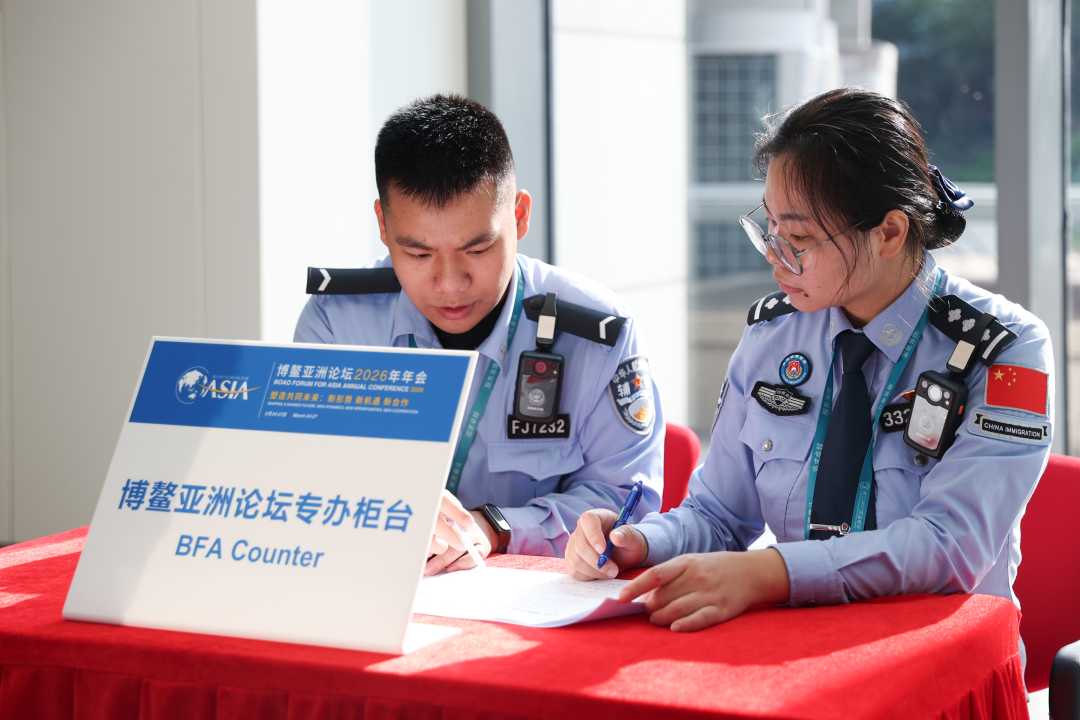 海口美兰、琼海博鳌、三亚凤凰三大国际机场是此次年会重点出入境口岸,自3月22日起陆续迎来与会嘉宾入境高峰。为确保年会期间口岸通关顺畅,海口出入境边防检查总站科学部署勤务,优化通关流程,细化保障措施,通过开设论坛年会专检通道、设置多语种引导岗、专职人员靠前保障等模式,为与会人员提供“一站式”通关服务,最大限度压缩与会人员排队等候时间。