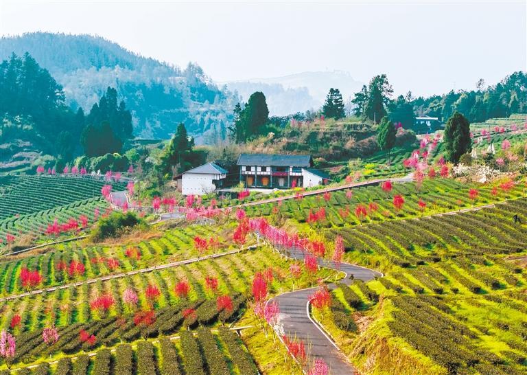 3月13日拍摄的重庆市南川区河图镇长坪村生态茶园。近年来,当地完善基础设施,茶旅融合发展,带动农户增收。