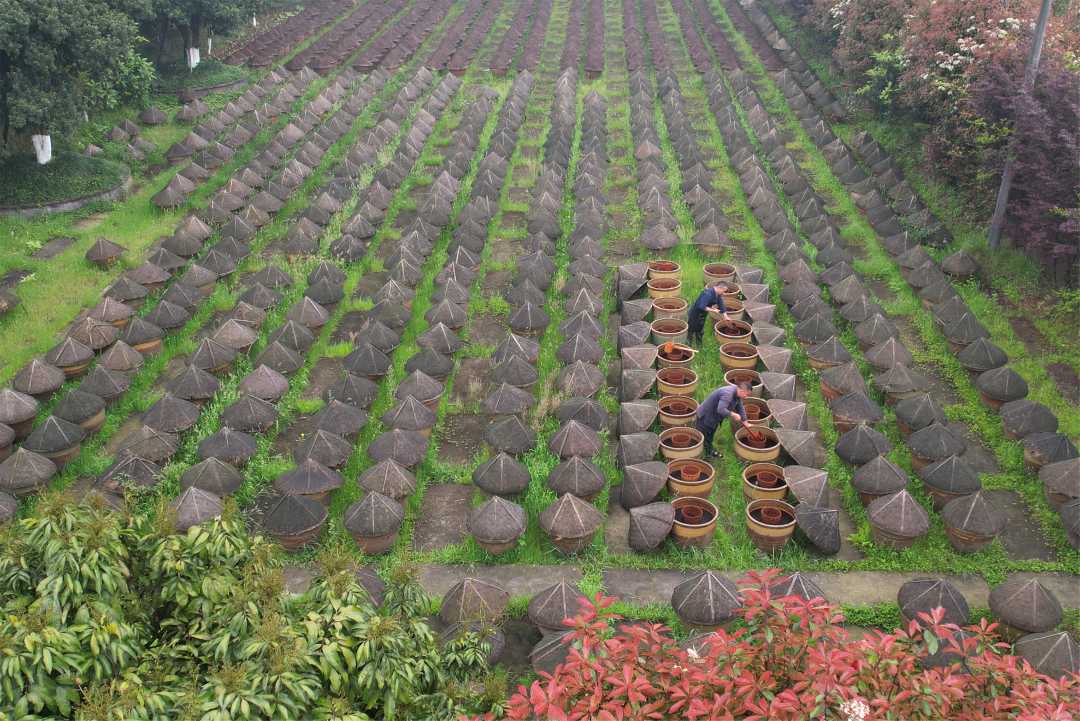 3月30日,贵州省赤水市天台镇一家晒醋厂,非遗传承技艺人在检查晾晒的醋坛。