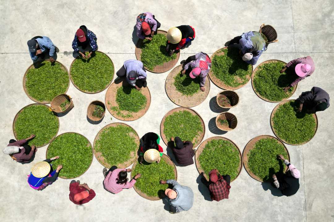 3月27日,云南省南涧彝族自治县碧溪乡凤凰山茶庄园,员工在分拣采回的茶叶。
