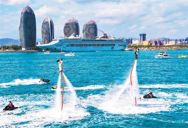3月17日,海南省三亚市凤凰岛附近海域,游客在体验水上运动。 叶龙斌摄(中经视觉)