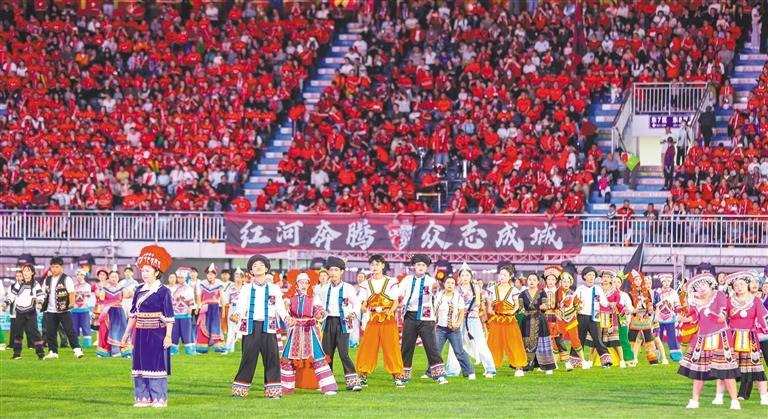 3月21日,2025/2026云南省城市足球联赛红河队对阵文山队的比赛在开远市激情开赛,现场座无虚席。徐贤华摄(中经视觉)