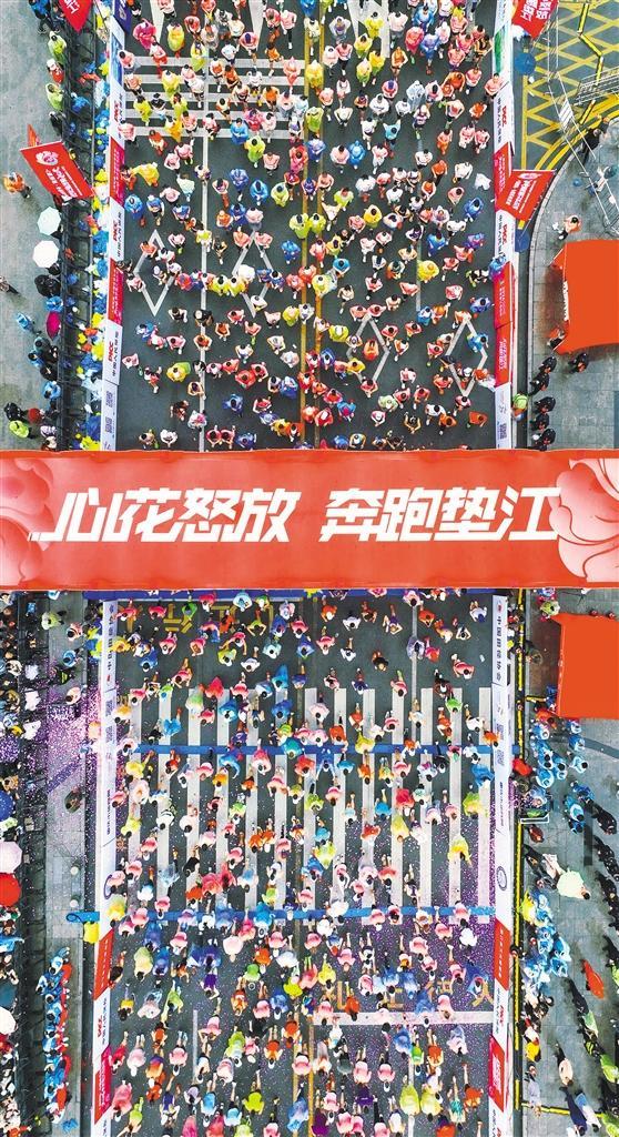 3月29日,重庆市垫江县三合湖湿地公园,重庆垫江马拉松鸣枪开赛,吸引12000余名选手参赛。 龚长浩摄(中经视觉)