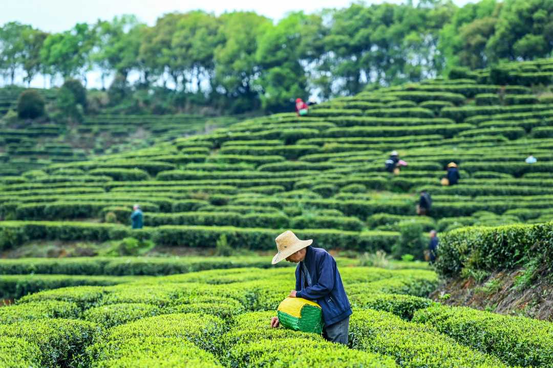 3月30日,江西省樟树市店下镇官堂村天心茶园,茶农在采摘明前茶,供应市场。