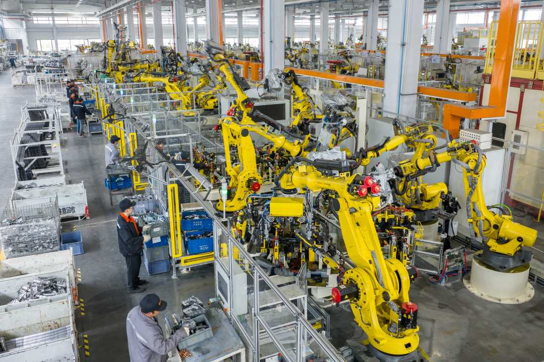 4月1日,位于浙江省湖州市长兴经济技术开发区的长兴地通汽车部件有限公司,工人在数字车间内操控工业机器人赶制新能源汽车配件订单。