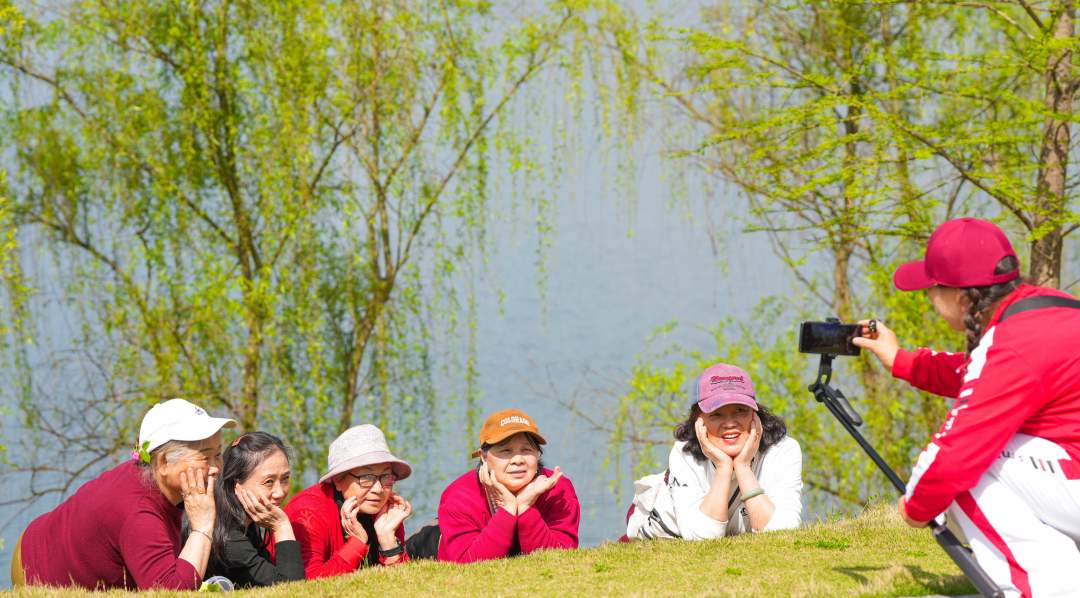 3月31日,重庆市垫江县桂溪街道三合湖湿地公园,市民在公园休闲游玩。
