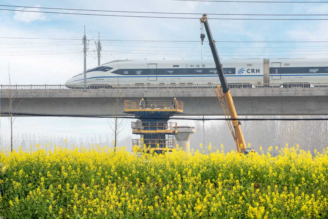 3月31日,潍宿高铁江苏省宿迁市宿城区洋北段建设正酣。