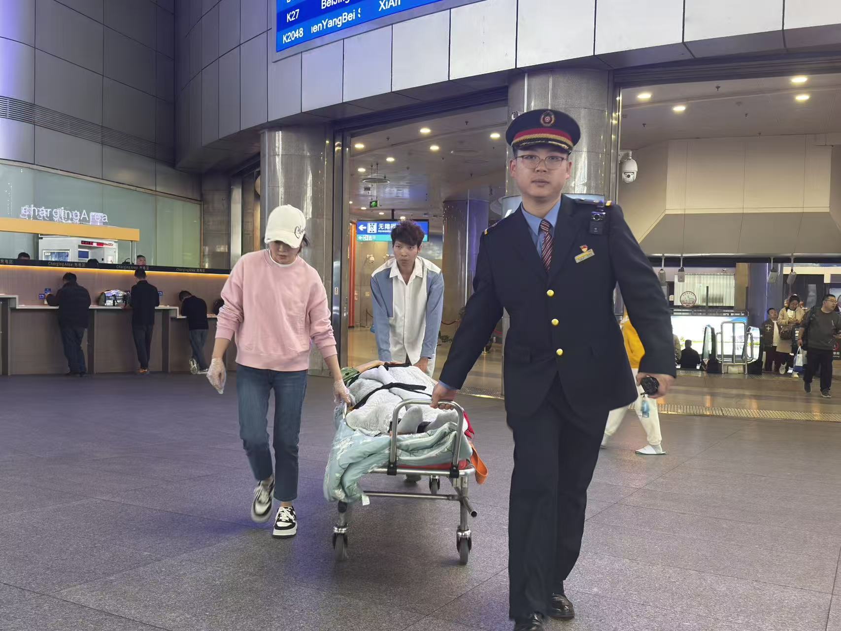 同时,车站推出多项便民利民举措,在进站口安检区域专门设置急客通道,为开车前15分钟内的紧急旅客提供优先安检、快速进站服务;扩大列车双边放行范围,最大限度减少旅客步行距离;升级完善站内充电设施,补强绿色通道标识,配备免费卫生纸等便民物资,切实提升旅客出行体验。