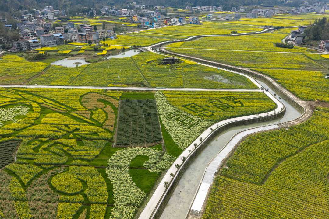 变化背后,是田块“化零为整”的变革。高罗镇将麻阳寨村1211亩零散地块纳入高标准农田建设,把过去的2291块“巴掌田”整合成五十块连片大田,实现了“田成块、渠相连、路相通”。土地整好了,思路也跟着变了——当地聘请专业团队,以金黄油菜为主色,套种彩色油菜和绿色作物,让农业基地变身为旅游景区。
