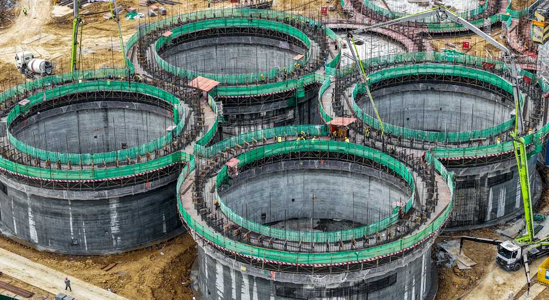 4月6日,江苏省宿迁市泗洪县归仁镇,中央储备粮宿迁直属库有限公司仓储项目建设繁忙。