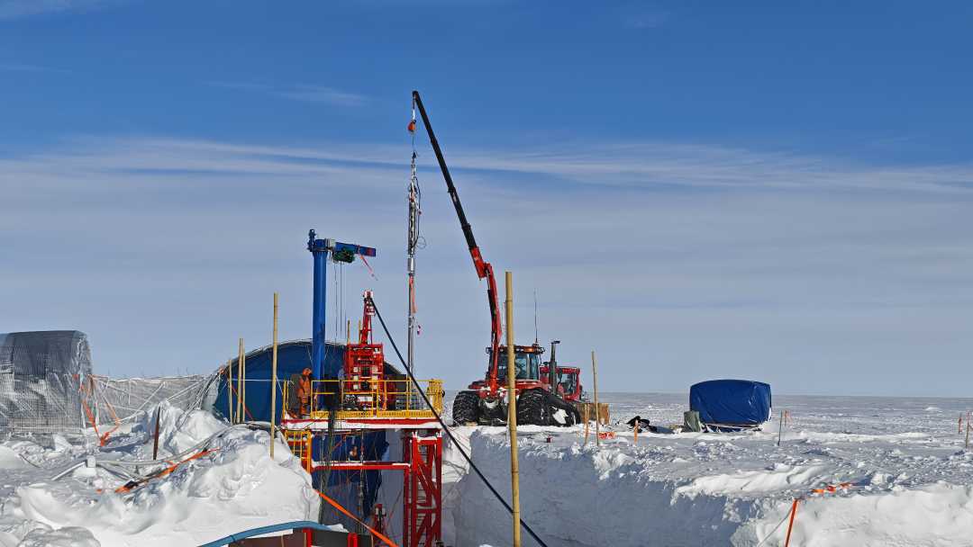 图为中国第42次南极考察队在东南极麒麟冰下湖区域,成功完成我国首次南极冰层热水钻探试验。