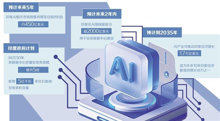 印度媒体宣称,在国际资本加持下,印度有望实现从“IT外包大国”向“AI服务与算力应用中心”迭代升级,AI产业也有望成为印度经济发展新的增长极。数据显示,AI在医疗保健、农业、制造业、金融服务、教育、气候服务等领域的应用,将提升印度经济效能。预计到2035年AI产业可推动印度经济增长1.7万亿美元,成为未来10年印度经济最强劲的增长动力之一。