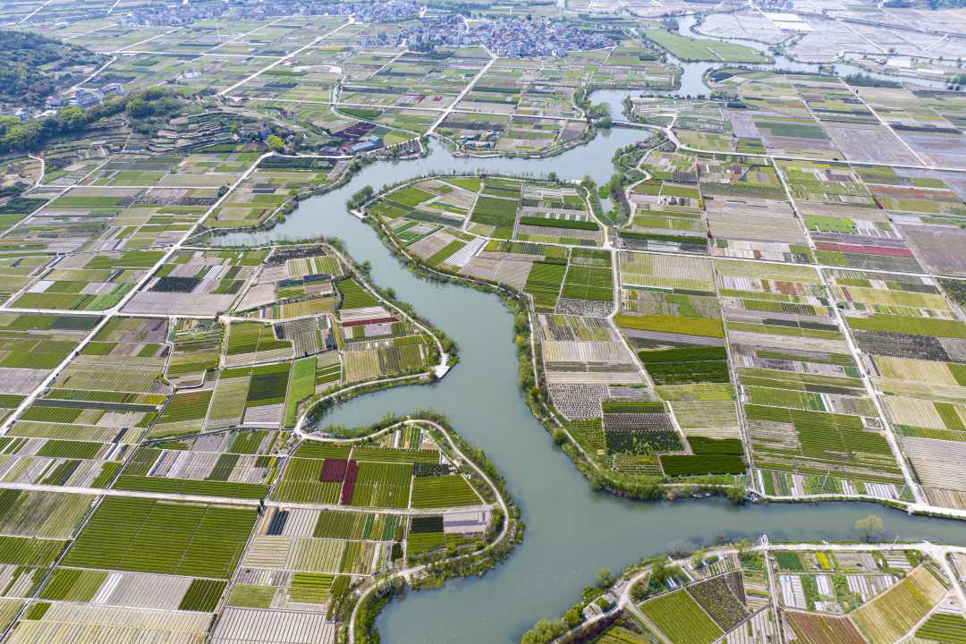 4月9日,浙江省宁波市北仑区柴桥街道,万亩田园绿意盎然,春景如画。