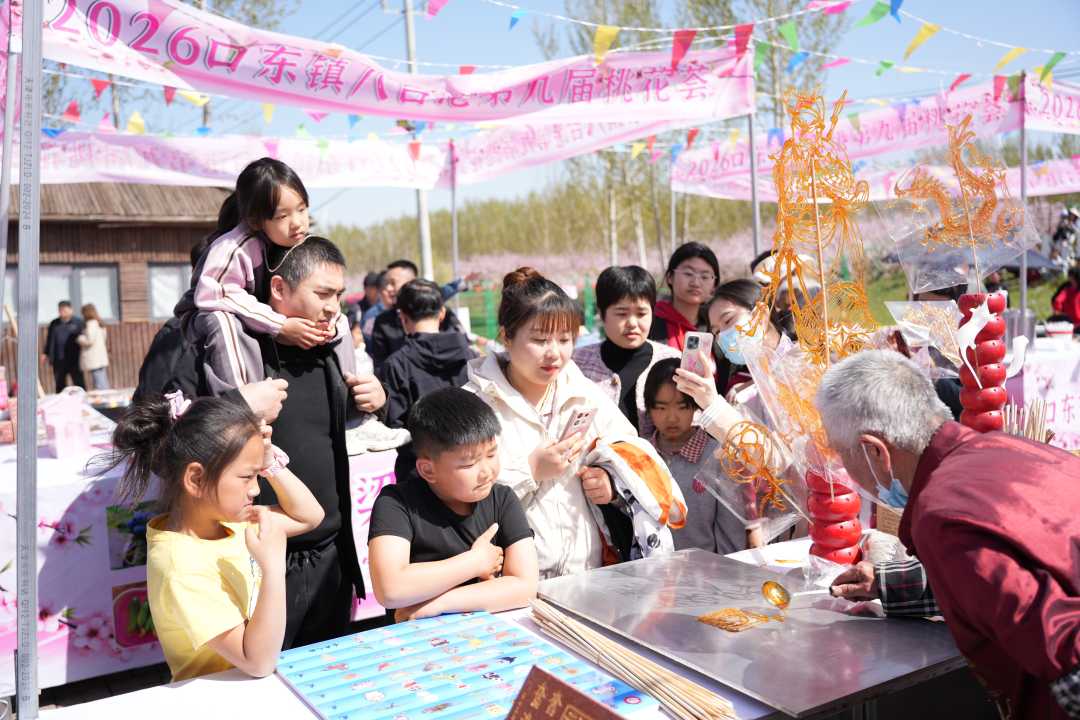 4月11日,2026年口东镇八台港第九届桃花荟在天津市宝坻区口东镇八台港村万亩桃园启幕。本届桃花荟以“春风十里桃源境,智趣AI满庭芳”为主题,依托潮白河畔生态底色与万亩桃园资源优势,精心策划12大特色活动,吸引了来自京津冀地区数万名游客前来观光游玩。